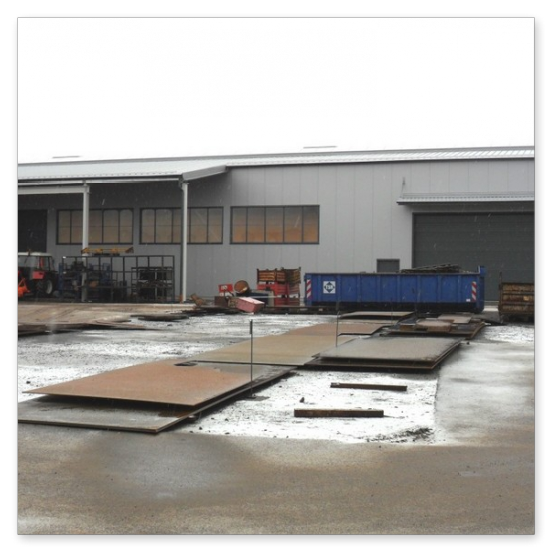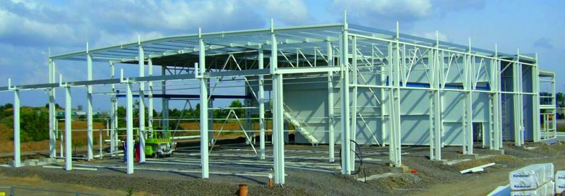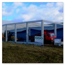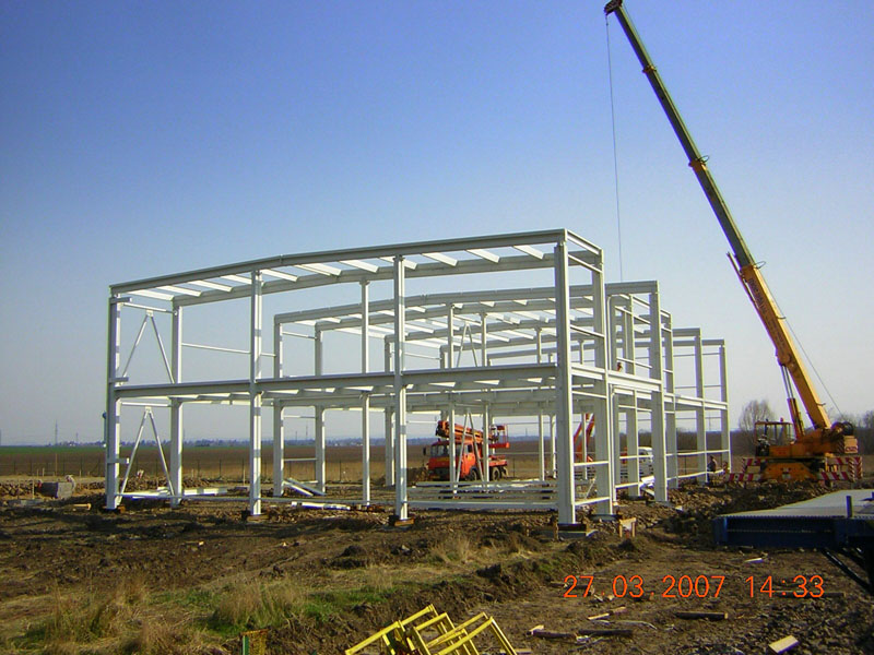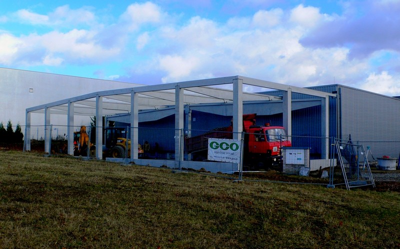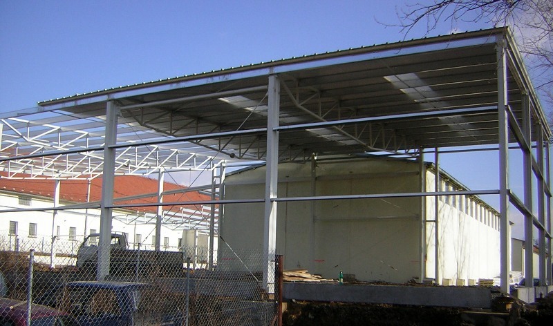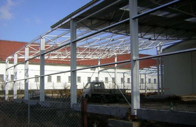 Předmět díla: stavba 5 ocelových nezateplených skladových hal a zastřešení skladové plochy s přístavbou dílen, skladu ND a kancelářské budovy