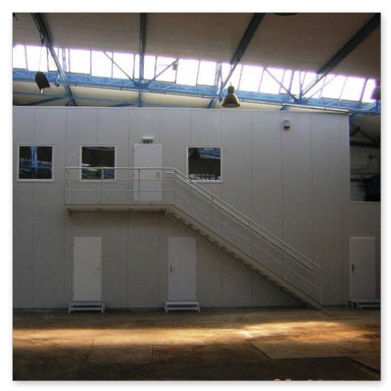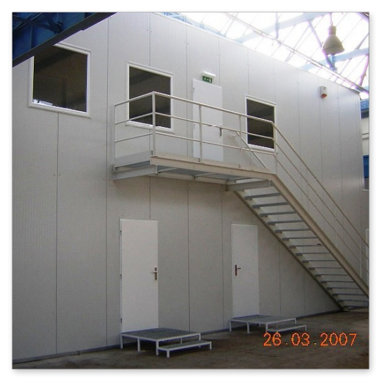 dvoupodlažní vestavba o půdorysu 16x11m, podlahová plocha 330m2 OK vestavby, opláštění, sádrokartonové konstrukce, protipožární podhledy, elektroinstalace silnoproud, slaboproud, vzduchotechnika, napojení vestavby na inženýrské sítě, úpravy haly související s provozem objednatele.